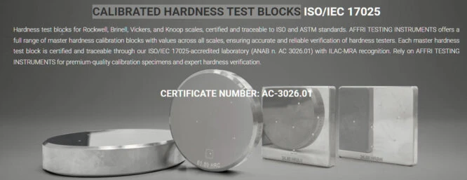 Rigorous quality controls guarantee outstanding precision and traceability. Choose AFFRI TESTING INSTRUMENTS for reliable, high-accuracy calibration specimens.