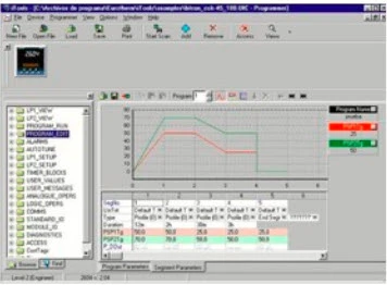 • Essay Graphical Representation, X-Y type, that shows in the screen the setpoint and the real values, as well as the configured alarms.