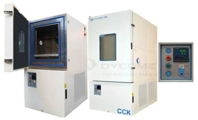 • Standard models with capacities from 81 (MINITEST) to 2000 liters. • 4 multidirectional castors in the base of the chamber to facilitate the movement, and/or vibration height adjustable support (optional depending on model). • Access port made in PVC with seal cap (different diameters). • Temperature control by electronic controller with digital read-actual value and setpoint work. • Temperature measuring by PT-100 Ohm. DIN Class probes • 2 stainless steel shelves