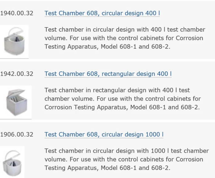 Corrosion Test Instruments, Models 608 400 l 1000 l 2000 l