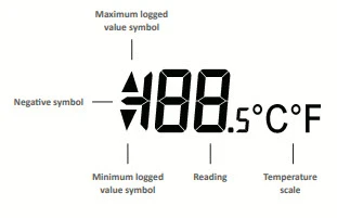 At the touch of a button, the user can cycle between the current, maximum and minimum stored values for temperature.