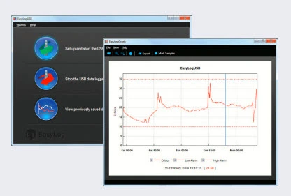 The user can easily set up the logger and view downloaded data by plugging the data logger into a PC’s USB port and using the free EasyLog software.