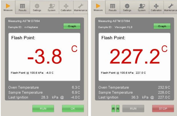 Pre-Programmed Correlation Methods to... | Pensky Martens Closed Cup: ASTM D93, EN ISO 2719, DIN 51758, IP 34, JIS K2265 TAG Closed Cup: ASTM D56 Abel Pensky Closed Cup: ISO 13736, IP 170 Small Scale Closed Cup and Flash / No Flash methods: EN ISO 3679, EN ISO 3680, ASTM D3828 |
