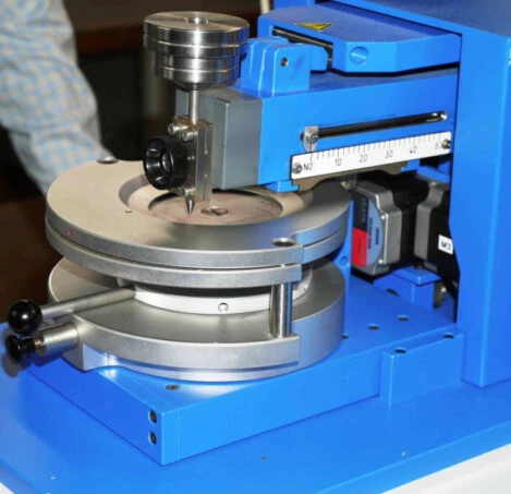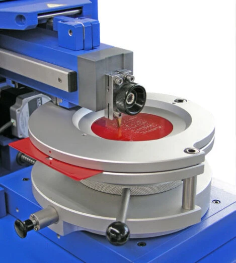 The cross cutting test, which is probably the most widely used test for adhesion will, if conducted manually, occasionally result in a pattern of variation in test results that depends on the users of the equipment. The SCRATCH HARDNESS TESTER 430P eliminates this inconsistency since the test procedure uses a pre-programmed electrically motorized drive. The substrate is fixed in a specimen holder. After setting the test force and starting the instrument the depth of the individual cuts is automatically reduced in a sequence of stages in accordance with a pre-selected pattern.
