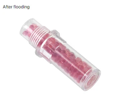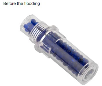 When the humidity increases, the silicgel indicator contained inside the cartridge gradually changes color from the original dark blue to pink (according to GOST 8984-75).