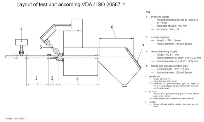 – Several global OEMs in the car industry develop individual requirements for Stone Impact Testing which are based on either of the above procedures and standards.