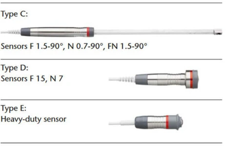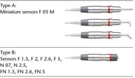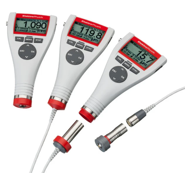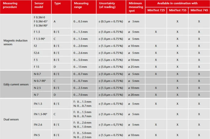 Dual sensor for automatic identification of the substrate (FN model). According to the substrate, it adjusts to the appropriate measuring principle: magnetic induction or eddy currents principle.