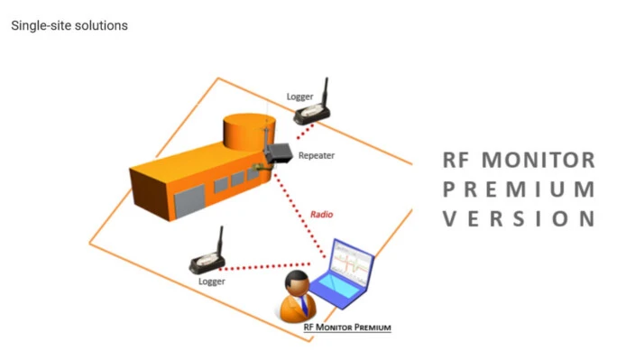 - RF Monitor Premium: for single-site installations. The loggers communicate to a PC, the measurements are displayed only on this PC.