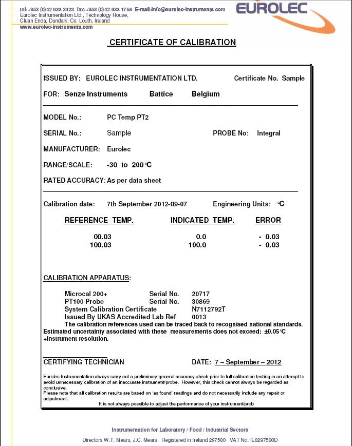 Consistency* : | ±0,01 °C —> +20... +50°C |