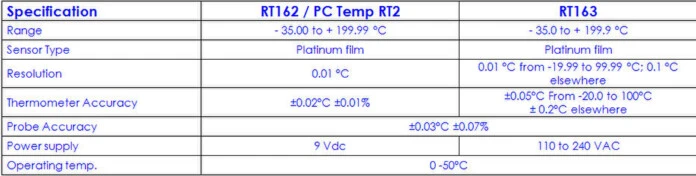 RT162, RT163 & PC TEMP RT2 REFERENCE THERMOMETERS