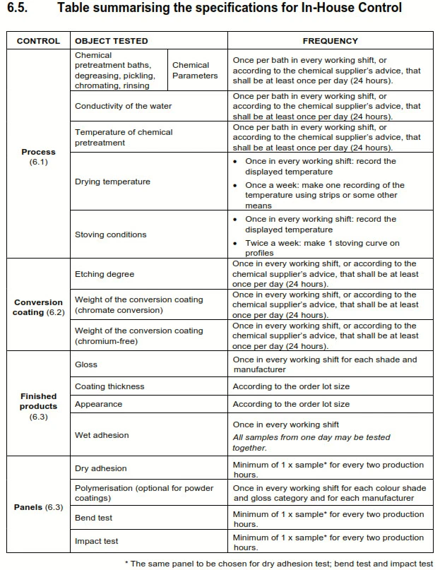 The aim of in-house control is to give the coating plant a tool to keep control over its own production process.The number of shifts worked, the requirements, the results of the analyses and corrective actions shall be entered in charts or some other records/registration systems readily accessible to the inspector.The staff responsible for managing in-house control shall follow the training programme stipulated by QUALICOAT.