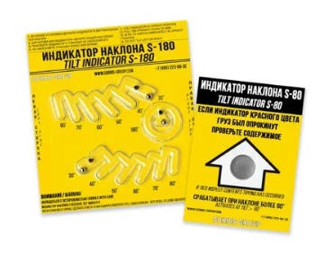 Shock indicators - single-use numbered devices fixed outside the box with the goods.
