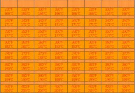 Often used in metal coating and screen printing processes, our 8 level Thermolabel® 188-232°C features eight incremental temperature sensitive elements that produce a non-reversible color change to black