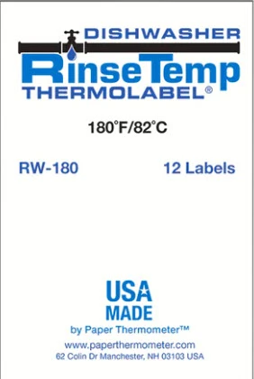 Our new RW-180 Dishwasher Rinse Temp Thermolabel verifies 82°C has been reached on the external rinse water pipe of hot water sanitation dishwashers.
