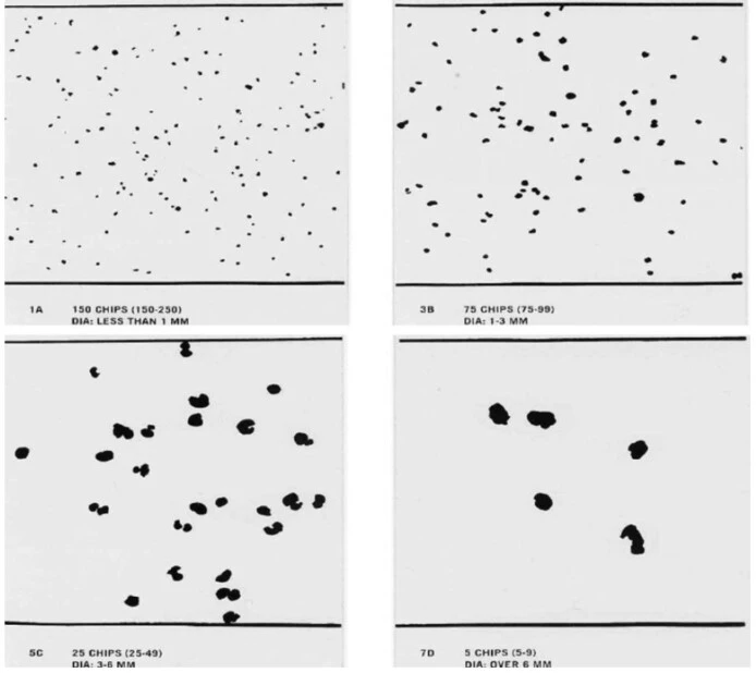 Most standards describing for evaluation of results a visual comparison of samples with reference images and/or manual counting of impacts