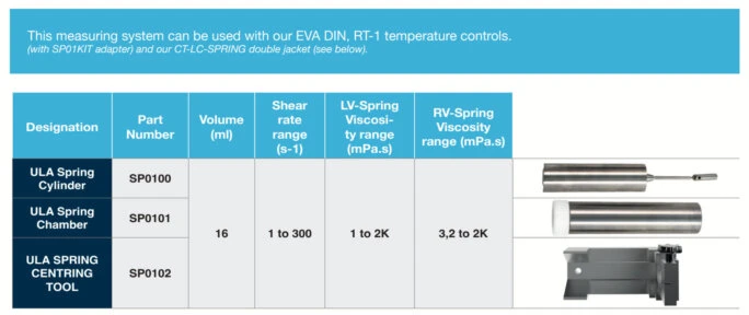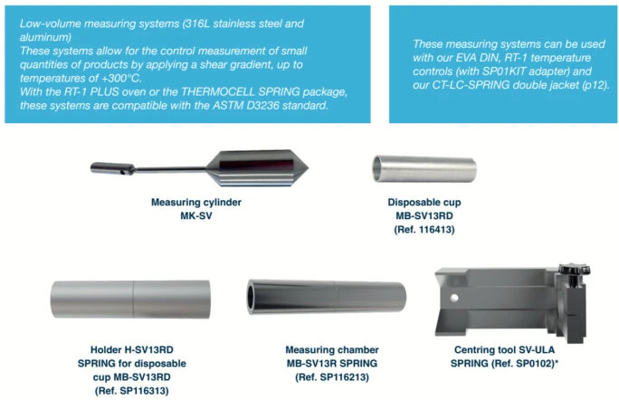 Sold separately or in kit form, these accessories are compatible with SPRING LV/RV viscometers.