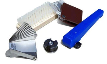 With 10 swivel-mounted folding rulers of 1 mm and 1.5 mm thickness each, for Grid Cutting Tests acc. to EN ISO, ISO, ASTM, JIS, BS, NF, SNV, EN, VDA and Daimler Benz (1.5 mm), incl. magnifying glass, polyamide bristle brush and plastic case