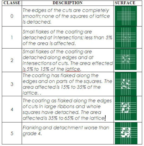 The result will be furnished with a judgement scale’s code (e.g. with the aid of the evaluation table in accordance with EN ISO 2409).