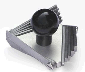 egonomically optimized, triangular version as supplied with model 295/XIII, with 5 swivel-mounted folding rulers of 1 mm, 2 mm and 3 mm thickness each,