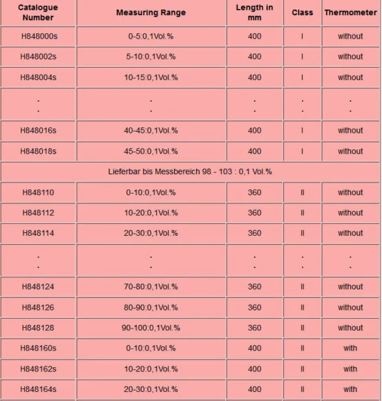 All alcoholometers class I to III are available government tested with verification certificate.