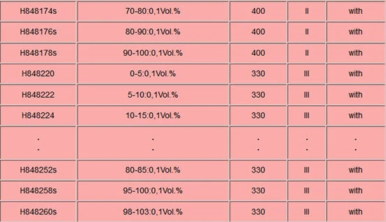 suitable for government testing, several types, percentage by weight and volume, reference temperature 15°C and 20°C.