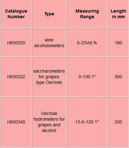 Hydrometers for Grapes and Wine,