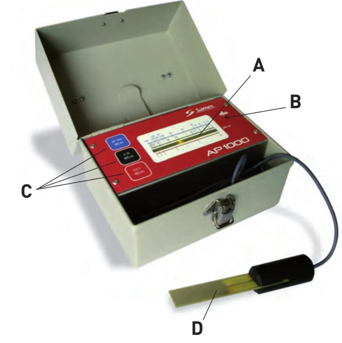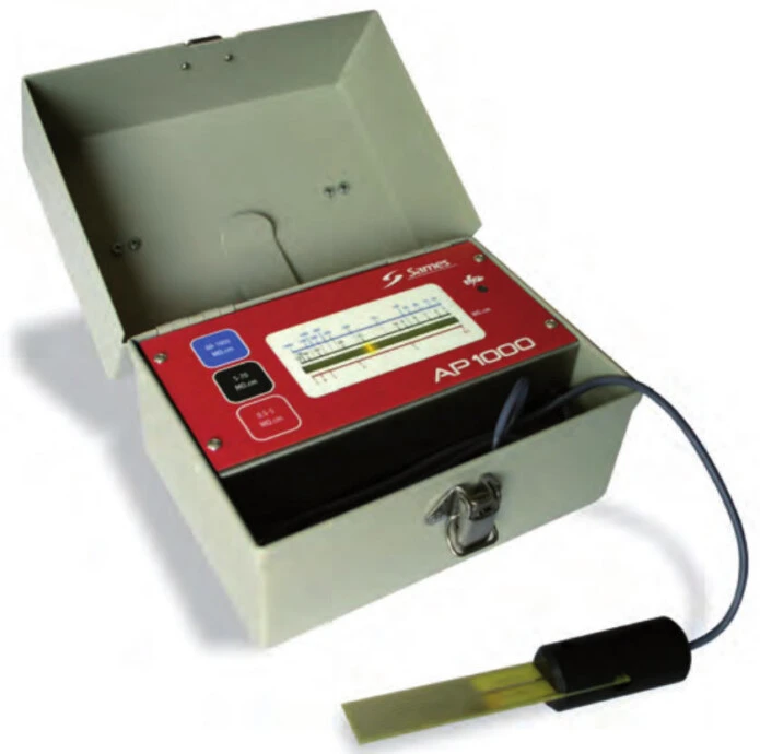 The AP 1000 resistivohmmeter is specially designed for quick and precise measurement of the resistivity of paints and varnishes, as they are sprayed with electrostatics.