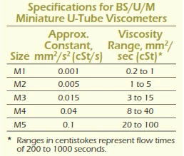 BS/U/M MINIATURE U-TUBE VISCOMETERS