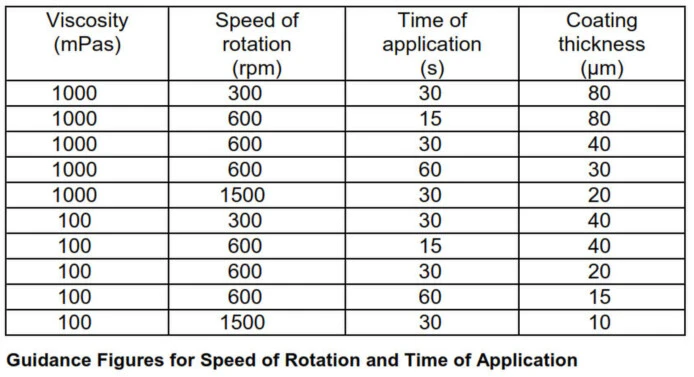 An adequate quantity of coating material (5 - 10 g) is poured onto the centre of the specimen, which is then made to rotate at a preset speed, and for a selected period of time.