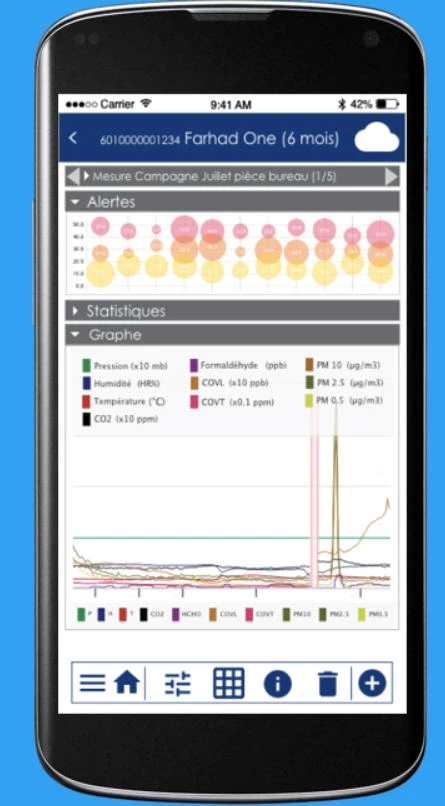 A complete application to manage IAQ station and data treatment. Store, download and share data in real time.