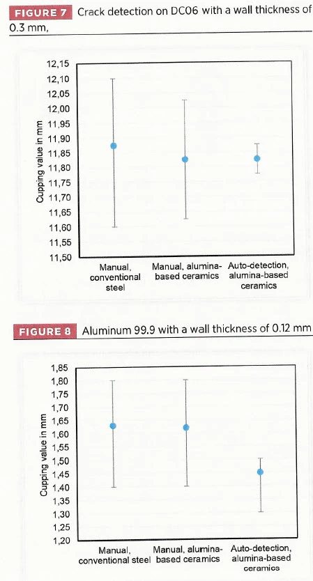 This speaks for a similar surface quality of the punches and for a similar tribological system in combination with the lubricant. It can be concluded that cupping results gained by forming with the translucent alurnina-based cerarnics punch can be directly compared to results gained by forming with conventional tools.