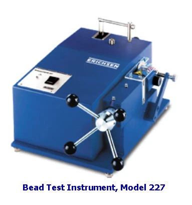 Furthermore the Bead Test Instrument, Model 227, can be used to form a bead into the cylindrical wall of a standard cup until a mechanic destruction of the coating is achieved. This is another possibility to intensify the test.