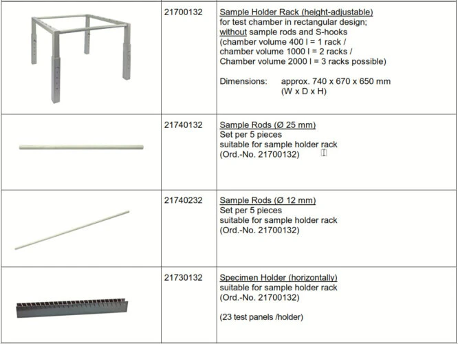 Description : Specimen Holder for Test Panels for holding 19 test panels at an angel of 20° to the vertical