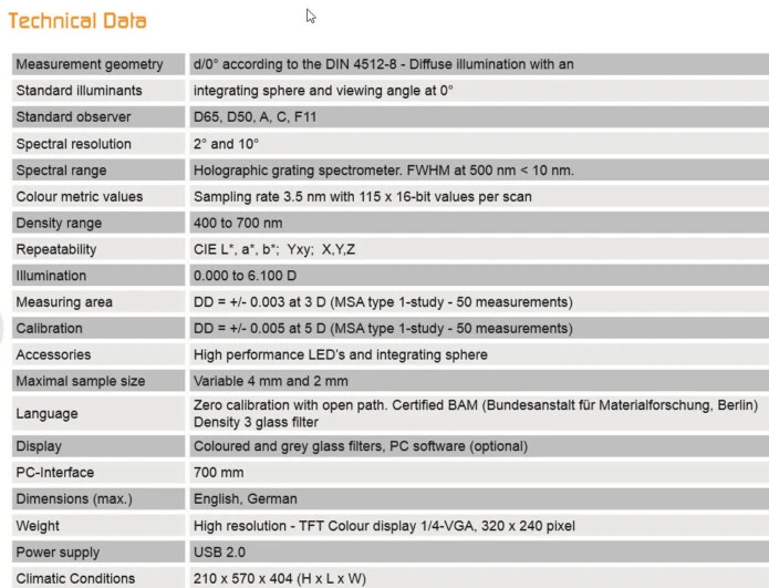 The high quality device is characterised by a number of features which are not available in other densitometers on the market.