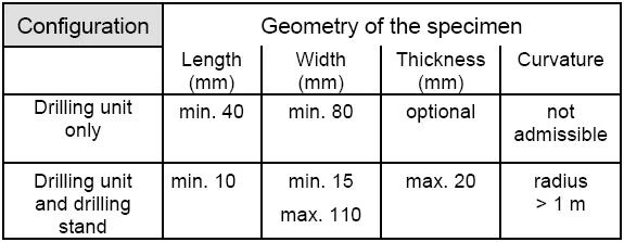 Drill 2 : of carbide steel with dual cutting edge geometry for coating thicknesses up to 200 microns (resolution 2 microns).