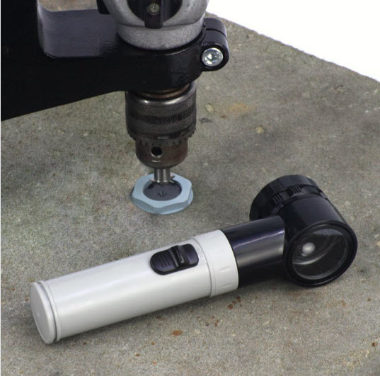 The first option is an illuminated magnifier with scale in 0.1 mm resolution (with a bore angle of 106.3° on which the conversion is based, this results in a value of 75 μm per scaled graduation mark). (PAINT BORER TCG "analogue")