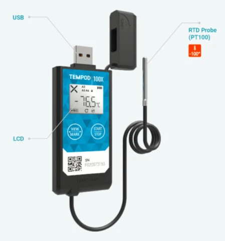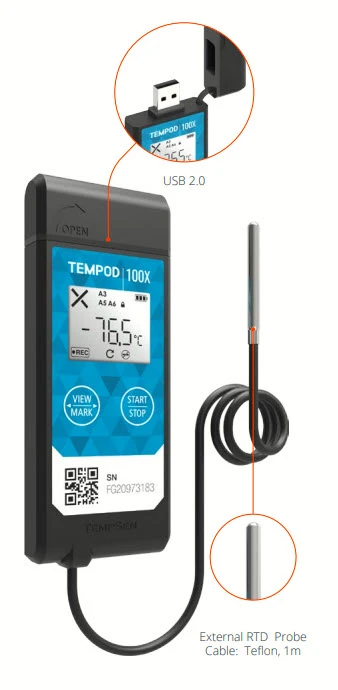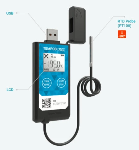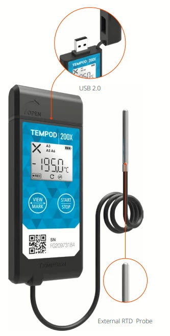 USB PDF Ultra Low Temperature Data Logger with External RTD Probe