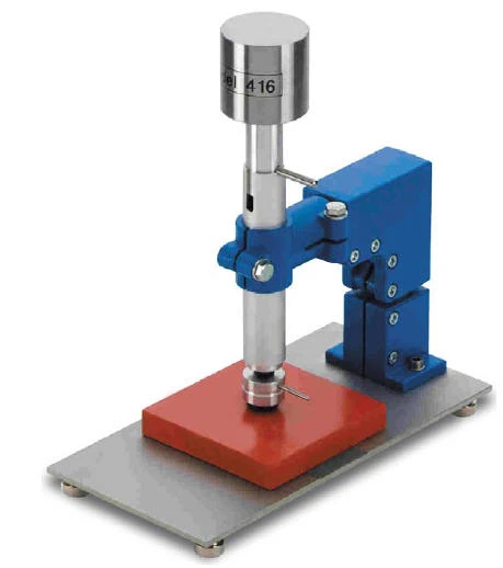 A test plunger faced with nylon fabric and loaded with a defined weight is lowered onto the test surface for a limited period of time and