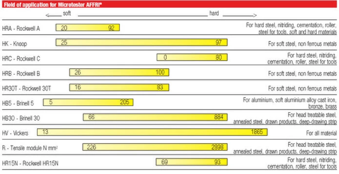 • Direct reasult in 10 different hardness scales and N mm2 sigma range to measure from 10 HRB to 1800 HV