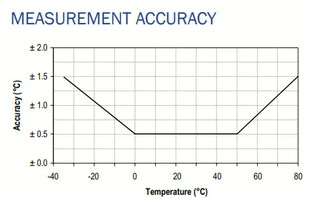 This standalone data logger measures and stores more than 16,000 temperature readings over a -35 to +80°C range with a resolution of 0.5°C.