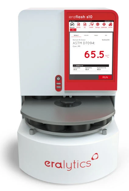 ERAFLASH S10 is the first 10-position autosampler for flash point testing. It uses the intrinsically safe methods ASTM D7094 and ASTM D6450. With a low sample volume of 1-2 ml only and the continuously closed sample cups they are ideally suited to built a completely safe autosampler for flash point testing.