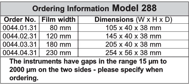 Model 288 with 2 working edges so that in this way several theoretical film thicknesses can be applied with a single instrument.