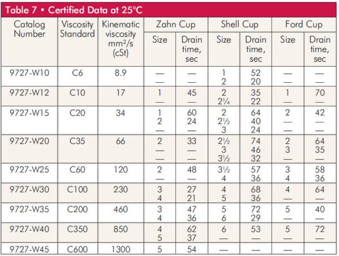Several capacities are available, according to standards; from 5 to 5000 cSt.