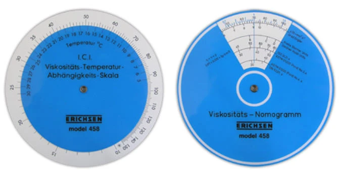 The Nomogram Disk 458 is designed for the conversion of viscosity measurement data in various unitary systems which have a specified reference temperature within any one unitary system.
