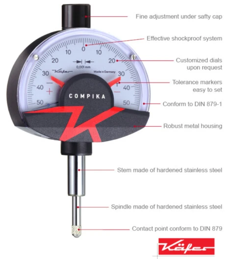 The following quality features characterize our manufacturing programme of Comparator Gauges Compika: