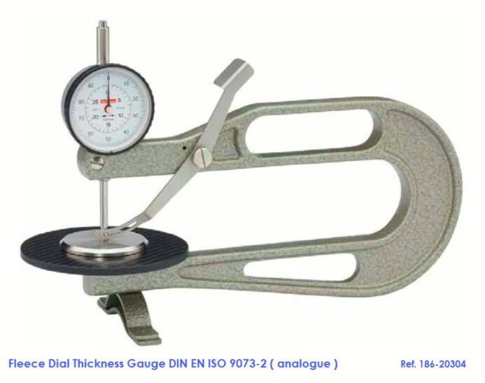 This Dial Thickness Gauge is used exclusively to Fleece Dial Thickness Gauge 9073-2 measure the thickness of normal fleece to DIN EN ISO 9073/2 (part 5.1). It is equipped with special contact