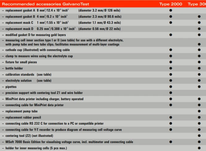The GalvanoTest 2000 is the basic model and measures a variety of coating/base combinations without any accessories being required.