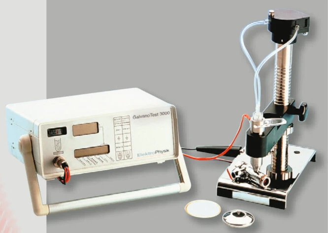 - GalvanoTest 3000: large electrolyte volumes circulated by a circulation pump enable quick serial measurements. Suitable for use on very small parts and for the measurement of gold layers.