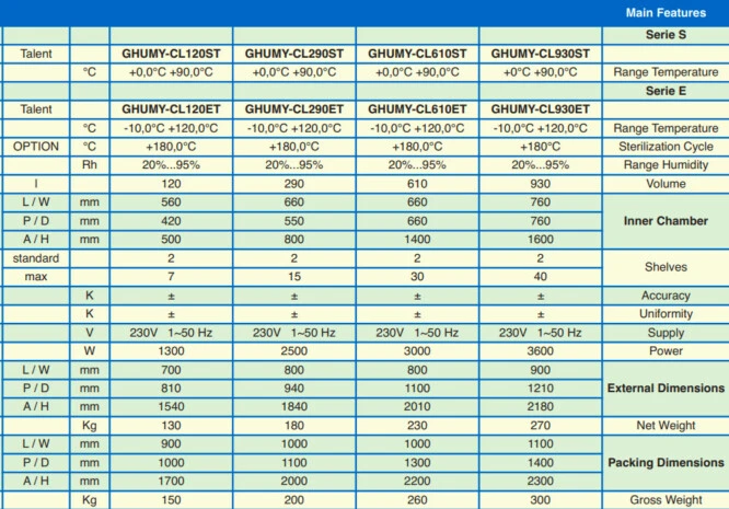 It offers excellent control of Temperature ° C / ° F and Relative Humidity RH% RH% and allows you to work up to high temperatures of + 180 ° C (option)