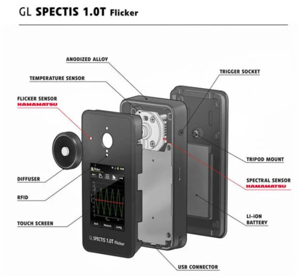 This project triggered the development of the Spectis 1.0 Touch + Flicker, improving on our existing GL Spectis 1.0 Touch by integrating an additional electronic circuit board with the fast photodiode to capture the optical flicker characteristics.